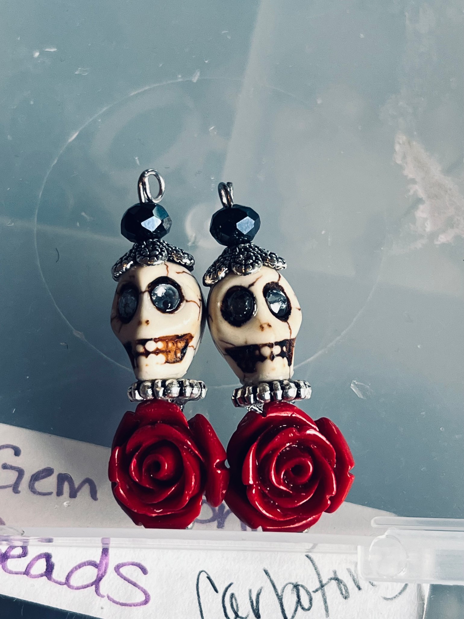White skulls ! All hooks are nickel free and eyes made out of Swarovski Crystal .